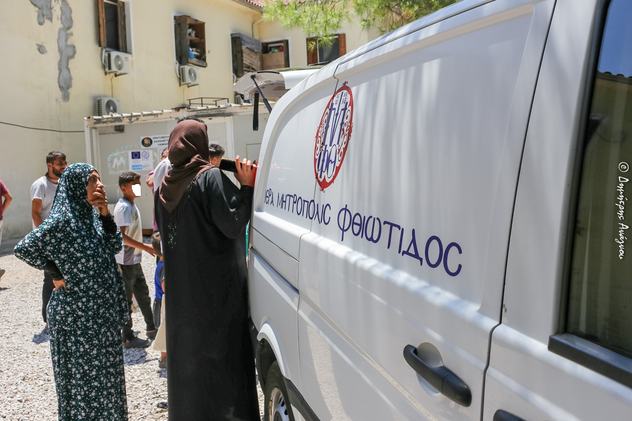 Ο κ. Συμεών φορτώνοντας το όχημα μεταφοράς του «Αποθετηρίου της Αγάπης» (Logistic Center) της Μητροπόλεως με βρεφικές πάνες, με κιβώτια με ποσότητες γάλακτος και με σχολικές τσάντες, που έφτιαξαν με τα χεράκια τους άλλα παιδάκια από τις εκπαιδευτικές δομές της Μητροπόλεως, επισκέφτηκε την δομή φιλοξενίας προσφύγων στις Θερμοπύλες και μετέδωσε το μήνυμα του Ευαγγελίου και της αγάπης του Χριστού σε 37 βρέφη εώς 3 ετών, σε 52 νήπια έως 6 ετών, σε 51 παιδιά εώς 14 ετών και σε 9 έφηβους έως 18 ετών και στους γονείς τους.
