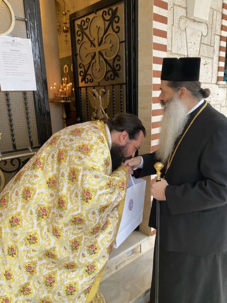 Στο κήρυγμά του ο Σεβασμιώτατος αναφέρθηκε στο πρόσωπο του Αγίου Αμβροσίου και ευχήθηκε με θερμά λόγια στον εορτάζοντα Άγιο Καθηγούμενο.