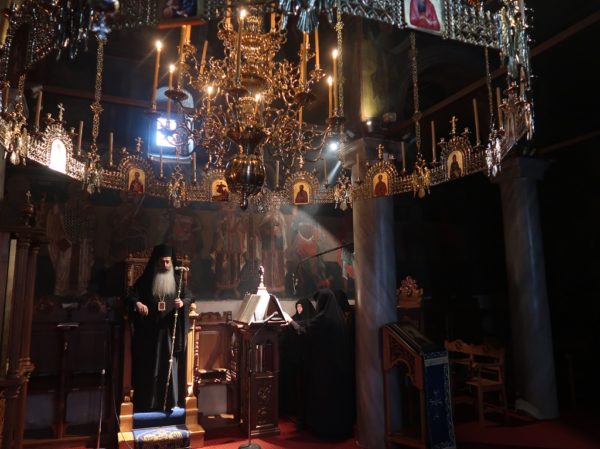 Μετά από την θερμή υποδοχή, την οποία επεφύλαξαν οι μοναχές στον Σεβασμιώτατο στην είσοδο της Μονής, στο κατανυκτικό Καθολικό τελέσθηκε ο Κατανυκτικός Αρχιερατικός Εσπερινός, όπου ο Σεβασμιώτατος προσέφερε στα μέλη της Αδελφότητος, λόγο κατηχητικό, λόγο επιστηρικτικό και πατρικό, λόγο ελπίδος και δυνάμεως για το στάδιο των πνευματικών αγώνων που ανοίγεται μπροστά μας, υπογραμμίζοντας: