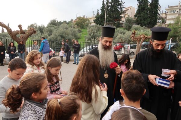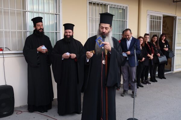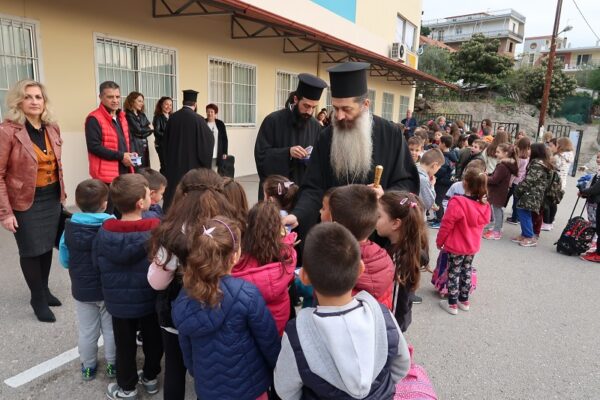 Ο σεπτός Ποιμενάρχης αφού ευχαρίστησε τον κ. Διευθυντή για την πρόσκληση είπε στους μικρούς μαθητές και στις μαθήτριες μια χαρούμενη και ευλογημένη καλημέρα, όπου τα παιδιά απάντησαν αναλόγως με μεγάλο ενθουσιασμό.