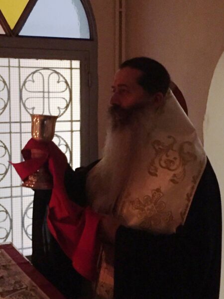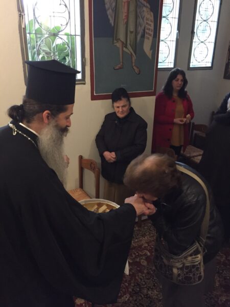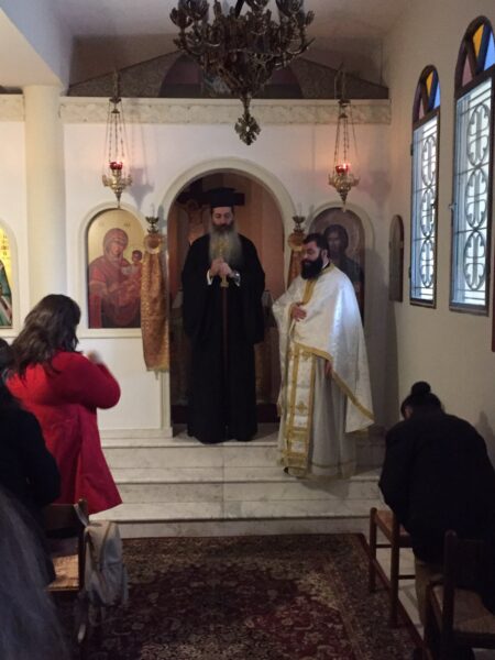 Αρχικά, ο Ποιμενάρχης παρέστη συμπροσευχόμενος από του Ιερού Βήματος στην Θεία Λειτουργία, η οποία τελείται καθημερινώς στο πλαίσιο του Ιερού σαρανταλείτουργου της Τεσσαρακοστής των Χριστουγέννων, στο κατανυκτικό Ιερό παρεκκλήσιο του αγίου Αποστόλου Ηρωδίωνος του Ιδρυτού της Τοπικής μας Εκκλησίας, το οποίο ευρίσκεται εντός του Πνευματικού Κέντρου του Ναού και κοινώνησε των Αχράντων Μυστηρίων.