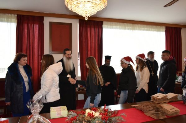 Ο Σεβασμιώτατος κ. Συμεών, πλαισιούμενος από επιτελικούς συνεργάτες του Ιερού Επισκοπείου Ταλαντίου και Λοκρίδος, τον Διευθυντή του Κέντρου, Αρχιμ. π. Δημήτριο Ζελιαναίο, τον υπεύθυνο της Γραμματείας κ. Βασίλειο Μακέδο, αλλά και τον Πρωτοσύγκελλο της Μητροπόλεως, Αρχιμ. π. Εφραίμ Τριανταφυλλόπουλο και άλλους κληρικούς και διακόνους, υποδέχθηκε μικρούς και μεγάλους στο Ιερό Επισκοπείο Ταλαντίου και Λοκρίδος με ανοιχτή αγκαλιά, αγάπη, δώρα και πολλές πατρικές ευχές.