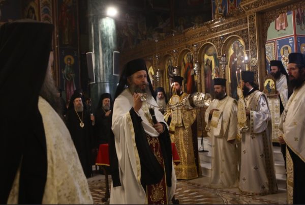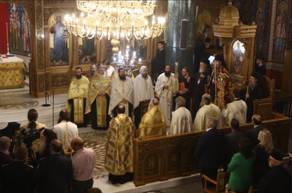 Στον Πολυαρχιερατικό Εσπερινό χοροστάτησε ο Σεβασμιώτατος Μητροπολίτης Γόρτυνος και Μεγαλοπόλεως κ. Νικηφόρος, συγχοροστατούντων των Σεβασμιωτάτων Μητροπολιτών: Χαλκίδος, Ιστιαίας και Βορείων Σποράδων κ. Χρυσοστόμου, Πατρών κ. Χρυσοστόμου, Μεσσηνίας κ. Χρυσοστόμου, Ιλίου, Αχαρνών και Πετρουπόλεως κ. Αθηναγόρου, Κηφισίας, Αμαρουσίου, Ωρωπού και Μαραθώνος κ. Κυρίλλου, Ιερισσού, Αγίου Όρους και Αρδαμερίου κ. Θεοκλήτου, Θεσσαλιώτιδος και Φαναριοφερσάλων κ. Τιμοθέου, Σταγών και Μετεώρων κ. Θεοκλήτου, Καστορίας κ. Καλλινίκου, Πολυανής και Κιλκισίου κ. Βαρθολομαίου, των Θεοφιλεστάτων Επισκόπων, Ευρίπου κ. Χρυσοστόμου και Ολβίας κ. Επιφανίου και του εορτάζοντος Μητροπολίτου Φθιώτιδος κ. Συμεών.