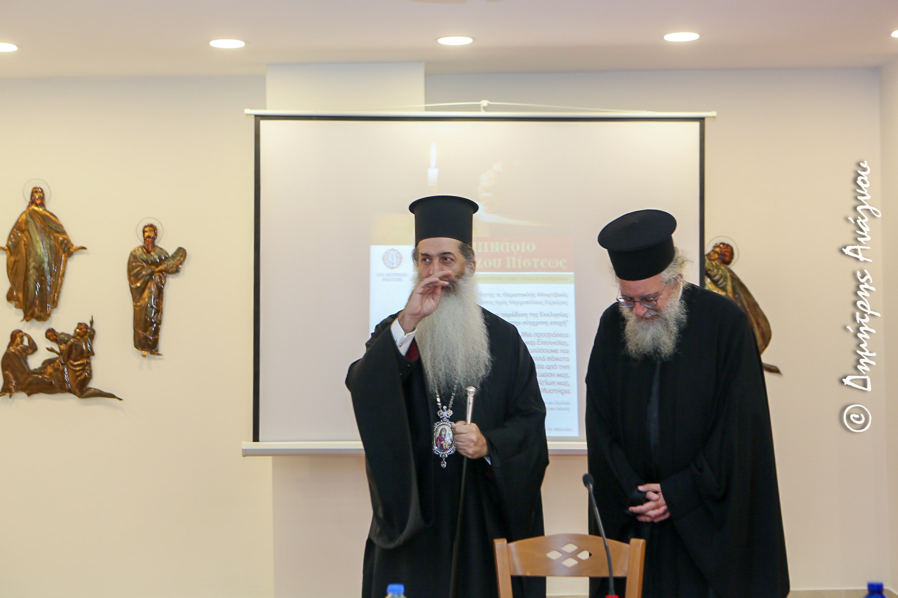 Τέλος, ο Σεβασμιώτατος κ. Συμεών στον πατρικό του λόγο ευχαρίστησε τον Άγιο Γενικό Αρχιερατικό Επίτροπο της Ιεράς Μητροπόλεως Κερκύρας Πρωτ. π. Θεμιστοκλή Μουρτζανό για την αποδοχή της προσκλήσεως και τον κόπο στον οποίο υπεβλήθη και τον συνεχάρη για την ανάπτυξη και την θεολογική προσέγγιση του σπουδαίου και επικαίρου θέματος.