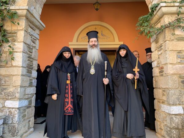 Στην σύντομη προσλαλιά του ο κ. Συμεών μετέφερε τις πατρικές ευχές και ευλογίες του Αρχιεπισκόπου Αθηνών και πάσης Ελλάδος κ. κ. Ιερωνύμου και συνεχάρη την νέα Καθηγουμένη της Μονής, γερόντισσα Θεοφανώ και την αδελφότητα, γι’ αυτό το νέο πνευματικό καρπό της Μονής, που είναι η μοναχή Στυλιανή η νεότερη.