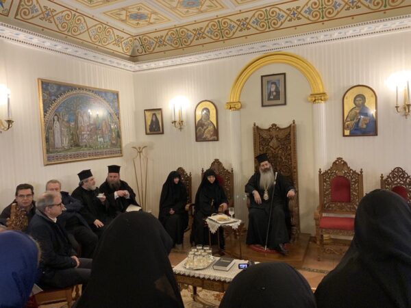 Κατά την φιλοξενία που παρέθεσε η Αδελφότητα στο Αρχονταρίκι της Μονής ο κ. Συμεών εξέφρασε την ευγνωμοσύνη του προς τον Μακαριώτατο πνευματικό του πατέρα, που του έχει δώσει την άδεια να έχει τελέσει στην Μονή τα τελευταία δυο χρόνια, τρεις κουρές μοναζουσών, την ενθρόνιση της νέας Καθηγουμένης Θεοφανούς και τώρα την ρασοφορία της μοναχής Στυλιανής.