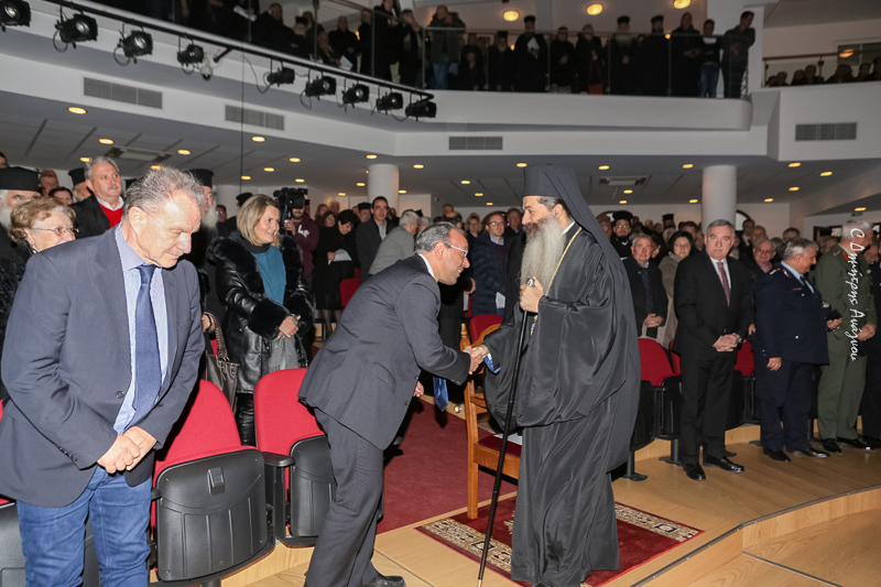 Ακολούθως την εκδήλωση χαιρέτισαν οι Άρχοντες του τόπου, οι οποίοι και παρέστησαν σύσσωμοι, με προεξάρχοντα τον συντοπίτη τους Εξοχώτατο Υπουργό των Οικονομικών κ. Χρήστο Σταϊκούρα.