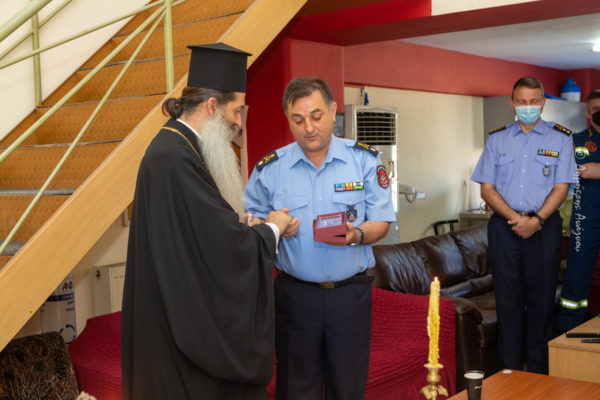 Τέλος, εκ μέρους της Πυροσβεστικής Υπηρεσίας Λαμίας απονεμήθηκαν στον Σεβασμιώτατο αναμνηστικά εις ένδειξιν τιμής και ευγνωμοσύνης προς το πρόσωπό του.