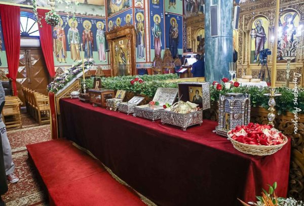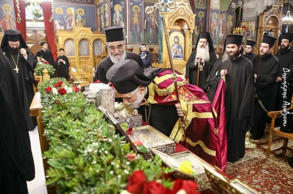 Στον Πολυαρχιερατικό Εσπερινό χοροστάτησε ο Θεοφιλέστατος Επίσκοπος Σκοπέλου κ. Νικόδημος, συχοροστατούντων του Θεοφιλεστάτου Επισκόπου Κεγχρεών κ. Αγαπίου και του οικείου Ποιμενάρχου, Σεβασμιωτάτου Μητροπολίτου Φθιώτιδος κ. Συμεών, ενώ από χθες έχουν εναποτεθεί αποτμήματα των Ιερών Λειψάνων των Φθιωτών Αγίων προς ευλογία και αγιασμό των πιστών.