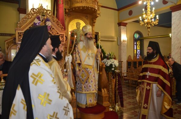 Πλήθος πιστών υπέδέχθη το πρωί τον Σεβασμιώτατο στα προπύλαια του Ναού, οι οποίοι εκδηλώνοντας τα καρδιακά τους συναισθήματα, αναφωνούσαν συνεχώς το ΑΞΙΟΣ στον Ποιμενάρχη μας και σε κάθε ευκαιρία, έσπευδαν να λάβουν την πατρική του ευλογία.