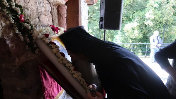 χαίρομαι πάρα πολύ που βρίσκομαι σε έναν πανέμορφο τόπο, σε έναν ορεινό τόπο, σε έναν καθαρό τόπο και όπως είναι καθαρός ο ορίζοντας, καθαρό το περιβάλλον, καθαρό το οξυγόνο, καθαρή και όμορφη η φύση, έτσι καθαρά και όμορφα είναι τα πρόσωπά σας και οι καρδιές σας και εύχομαι πάντοτε έτσι να μείνουν και έτσι να είναι, γιατί πρώτιστα οι καρδιές μας αγαπητοί μου αδελφοί, καθαρίζουν, ζωογονούνται και ομορφαίνουν από τη Χάρη και τη δύναμη των Αγίων της Εκκλησίας μας.