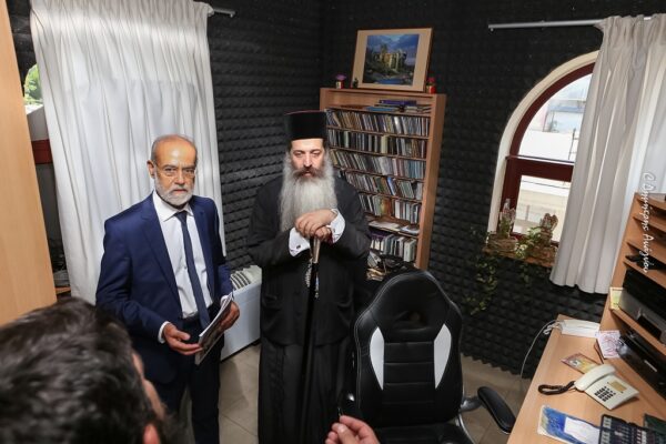 Τον κ. Κατσιάρα υπεδέχθη εγκαρδίως και ξενάγησε ο Διευθυντής του Ραδιοφωνικού Σταθμού και του Γραφείου Τύπου Πρωτ. π. Δημήτριος Ατματζίδης και τα στελέχη του Σταθμού.