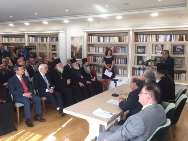 Ακολούθως και σύμφωνα με το πρόγραμμα στην Βιβλιοθήκη κατέφθασε η Αυτού Εξοχότης, ο Πρόεδρος της Ελληνικής Δημοκρατίας κ. Προκόπης Παυλόπουλος, όπου μαζί με τον Μακαριώτατο παρέστησαν στην επίσημη παρουσίαση του νέου προπτυχιακού εξ αποστάσεως προγράμματος «Βυζαντινή Μουσική – Ψαλτική Τέχνη» από το Ευρωπαϊκό Πανεπιστήμιο Κύπρου.