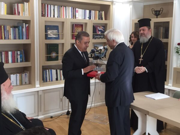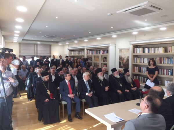 Ακολούθως και σύμφωνα με το πρόγραμμα στην Βιβλιοθήκη κατέφθασε η Αυτού Εξοχότης, ο Πρόεδρος της Ελληνικής Δημοκρατίας κ. Προκόπης Παυλόπουλος, όπου μαζί με τον Μακαριώτατο παρέστησαν στην επίσημη παρουσίαση του νέου προπτυχιακού εξ αποστάσεως προγράμματος «Βυζαντινή Μουσική – Ψαλτική Τέχνη» από το Ευρωπαϊκό Πανεπιστήμιο Κύπρου.
