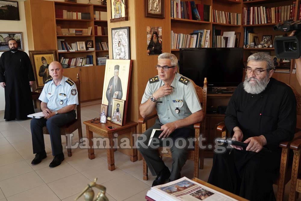 Στη σύσκεψη πήραν μέρος ο Ανώτ. Διοικητής Φρουράς Ταξίαρχος Αρίστος Περρής, ο Αντιπεριφερειάρχης Φθιώτιδας Ευθύμιος Καραΐσκος, ο Δήμαρχος Λαμιέων Νίκος Σταυρογιάννης και ο Διευθυντής της ΔΑ Φθιώτιδας Δημήτριος Φούρλας, ενώ την ΙΜ Φθιώτιδας εκπροσώπησε ο Γενικός Αρχιερατικός Επίτροπος Αιδεσιμολογιώτατος Πρωτοπρεσβύτερος π. Νεόφυτος Ραφαηλίδης.