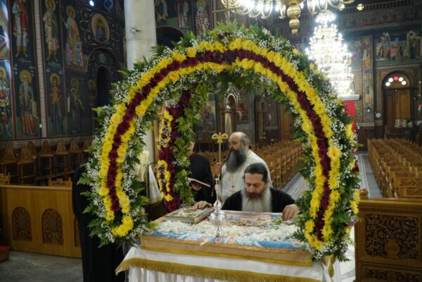 Την Ιερά Ακολουθία ετέλεσε ο Πρωτοσύγκελλος της Ιεράς Μητροπόλεως, Πανοσιολ. Αρχιμ. π. Άγγελος Ανθόπουλος, πλαισιούμενος από τον Γενικό Αρχιερατικό Επίτροπο της Μητροπόλεως Αιδεσιμολ. Πρωτ. π. Νεόφυτο Ραφαηλίδη, τον Προϊστάμενο του Ναού Αιδεσιμ. Πρωτ. π. Ιωάννη Καραμέρη και τον Προϊστάμενο – Εφημέριο των Αγίων Αποστόλων Παγκρατίου Αιδεσιμ. Πρωτ. π. Βασίλειο Καραμέρη.