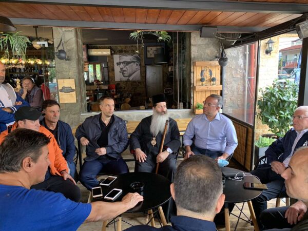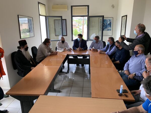 Ο Σεβασμιώτατος έλαβε μέρος και σε σύσκεψη αφ’ ενός μεν με τον Πρόεδρο του ΕΛΓΑ και τ. Υπουργό κ. Ανδρέα Λυκουρέντζο, αφετέρου δε και με το επίσημο κυβερνητικό κλιμάκιο, το οποίο κατέφθασε το μεσημέρι στο Λιανοκλάδι, κατόπιν εντολής του Πρωθυπουργού της χώρας κ. Κυριάκου Μητσοτάκη υπό τον Υφυπουργό Εσωτερικών κ. Θεόδωρο Λιβάνιο και τον Γενικό Γραμματέα Υποδομών κ. Καραγιάννη.