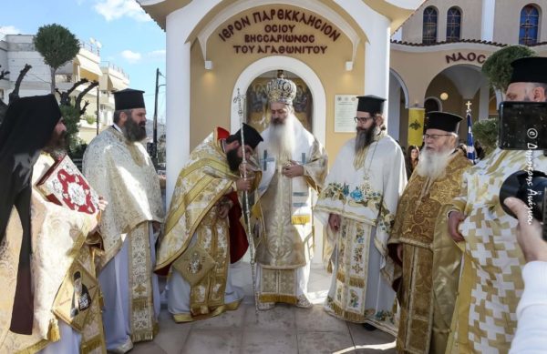 Προ της απολύσεως, ο Σεβασμιώτατος κ. Συμεών, τέλεσε τον Αγιασμό των Θυρανοιξίων του Ενοριακού Ιερού Παρεκκλησίου προς τιμήν του Οσίου και Θεοφόρου Πατρός Βησσαρίωνος του Αγαθωνίτου λίγες ημέρες πριν τον δεύτερο επίσημο εορτασμό της ετήσιας μνήμης του Οσίου. Ο τόπος ανέγερσης του Παρεκκλησίου ιδιαίτερα γνώριμος για τον Όσιο, καθώς λίγα μέτρα πιο πάνω, ο Όσιος για πολλά χρόνια ανέμενε στην στάση, η οποία υπήρχε εκεί, τα διερχόμενα λεωφορεία για την περιοχή του Δομοκού, όπου και περιόδευε κομίζοντας  την Ιερά Εικόνα της Παναγίας της Αγαθωνίτισσας, «ευεργετών και ιώμενος» τους πιστούς κατοίκους των χωριών του ορεινού Δομοκού.