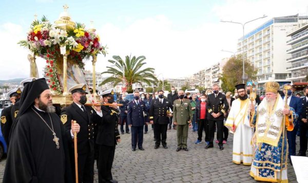 Ο Σεβασμιώτατος, λαμβάνοντας αφορμή από το Αποστολικό Ανάγνωσμα, ανέπτυξε στο πολυπληθές εκκλησίασμα την σχέση η οποία θα πρέπει να διέπει το ποίμνιο με τον τοπικό Επίσκοπο και έφερε ως παράδειγμα την σχέση σεβασμού, αγάπης και τιμής των κατοίκων των Μύρων της Λυκίας προς τον Επίσκοπό τους Άγιο Νικόλαο. Πριν από την Απόλυση της Θείας Λειτουργίας πραγματοποιήθηκε πανηγυρικά η Περιφορά της ιερής Εικόνας του Αγίου Νικολάου στις κεντρικές οδούς της αγοράς της πόλης και του λιμένος –πρώτη λιτάνευση μετά την έναρξη της πανδημίας– στην οποία συμμετείχαν ευλαβικά το Λιμενικό Σώμα, οι Αρχές της πόλης, το Γυμνάσιο και Πολιτιστικοί Σύλλογοι που βρίσκονται στα όρια της εορτάζουσας Ενορίας. Η Περιφορά κατέληξε στο «Μνημείο Αφίξεως του Αποστόλου Παύλου εν Νεαπόλει» και στην κεντρική είσοδο του Ναού του Αγίου Νικολάου ο Σεβασμιώτατος ευχήθηκε εγκαρδίως στους εορτάζοντας και στις εορτάζουσες, με τη συμμετοχή δε όλων των παρισταμένων εψάλη ο Εθνικός Ύμνος.
