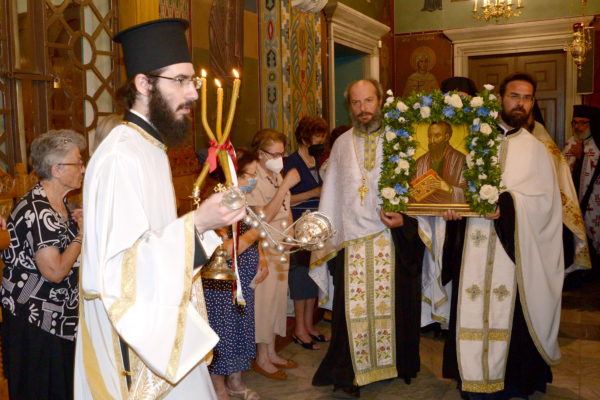 Το απόγευμα της Τρίτης 28.06.2022 εψάλη ο πανηγυρικός Πολυαρχιερατικός Εσπερινός και τελέσθηκε η αρτοκλασία, χοροστατούντος του Σεβ. Μητροπολίτου Κηφισίας κ. Κυρίλλου, ο οποίος προ της Απολύσεως ανέλαβε και την διακονία του θείου λόγου. Λόγω των δυσμενών καιρικών συνθηκών η καθιερωμένη λιτανεία της ιεράς Εικόνος του Αγίου μετετέθη για την κυριώνυμη ημέρα της Εορτής και αντ’ αυτής πραγματοποιήθηκε η λιτή της Εορτής εντός του ιερού Ναού.