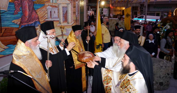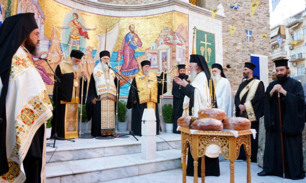 Σύμφωνα με τον τοπικό Τύπο, μετά τον Πανηγυρικό Εσπερινό χθες το απόγευμα, ο Σεβασμιώτατος πήρε την εικόνα στα χέρια του, καλώντας το ποίμνιο να περπατήσει μαζί του μέχρι το Βήμα του Αποστόλου Παύλου, όπου πραγματοποιήθηκε η αρτοκλασία. Στο πλευρό του ήταν ο Δήμαρχος Καβάλας, Θεόδωρος Μουριάδης, ενώ οι άλλοι βουλευτές και αιρετοί ακολούθησαν διαφορετική πορεία έως εκεί.