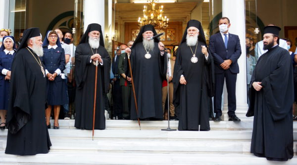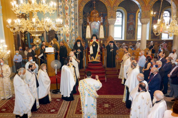 Στις ιερές Ακολουθίες, οι οποίες τελέσθηκαν λιτά και απλά, σύμφωνα με τις σχετικές υποδείξεις της Ιεράς Συνόδου της Εκκλησίας της Ελλάδος αλλά και σύμφωνα με το ήθος και την παράδοση της Ορθοδόξου Εκκλησίας, και με ιδιαίτερη μέριμνα για την αποφυγή πολυώρου συγχρωτισμού των πιστών, μετείχαν μαζί με τον επιχώριο Μητροπολίτη οι Σεβασμιώτατοι Μητροπολίτες Καλαβρύτων και Αιγιαλείας κ. Ιερώνυμος και Λήμνου και Αγίου Ευστρατίου κ. Ιερόθεος.