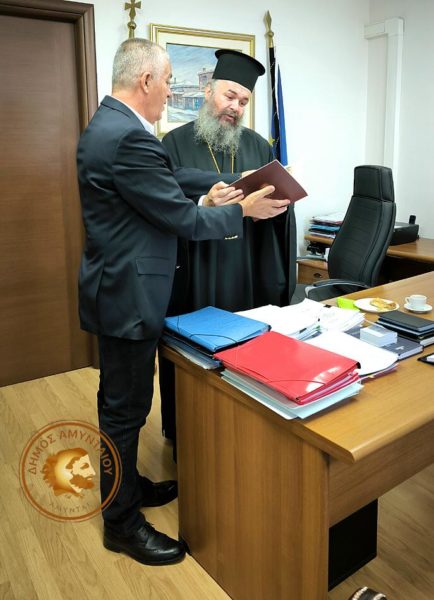 Τον Δήμαρχο Αμυνταίου Ιωάννη Λιάση, επισκέφθηκε το πρωί της Τρίτης 27ης Αυγούστου 2024 ο Σεβασμιώτατος Μητροπολίτης Φλωρίνης, Πρεσπών και Εορδαίας κ. Ειρηναίος, συνοδευόμενος από τον Αρχιερατικό Επίτροπο στο Αμύνταιο, Αρχιμανδρίτη π. Σεβαστιανό Τοπάλη, τον Πρωτοπρεσβύτερο π. Γεώργιο Μογλενίδη, τον π. Θωμά Γρίβα και τον υποψήφιο διδάκτορα της Θεολογικής Σχολής ΑΠΘ, Ηλία Μογλενίδη.