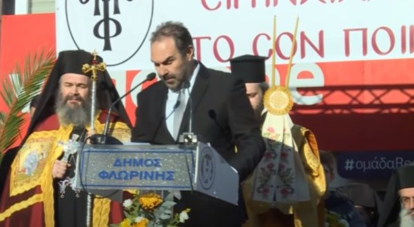 Ο Σεβασμιώτατος κ. Δαβίδ, παρέδωσε την ποιμαντορική ράβδο στο νέο Ποιμενάρχη και ακολούθως ο Δήμαρχος Φλώρινας τον προσφώνησε με θερμούς λόγους εκ μέρους όλων των δημοτών.
