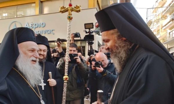 Τον νέο Μητροπολίτη υποδέχτηκε στις 15:00 στην πλατεία της πόλης ο τοποτηρητής της Μητρόπολης, Μητροπολίτης Γρεβενών κ. Δαβίδ, με τον δήμαρχο και τους παριστάμενους Ιεράρχες που βρίσκονται στη Φλώρινα για την ενθρόνιση.