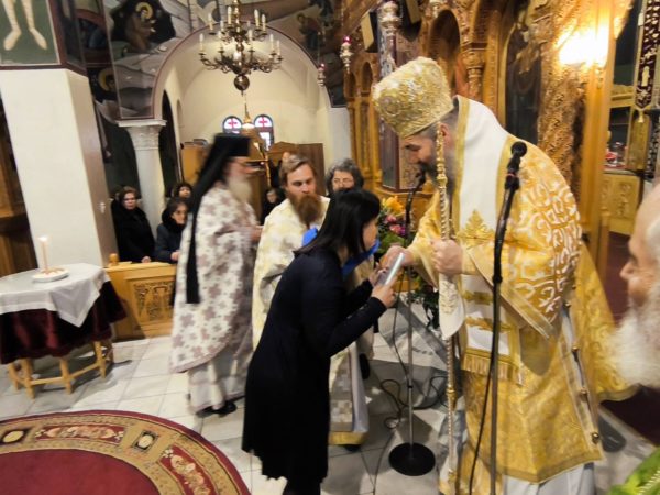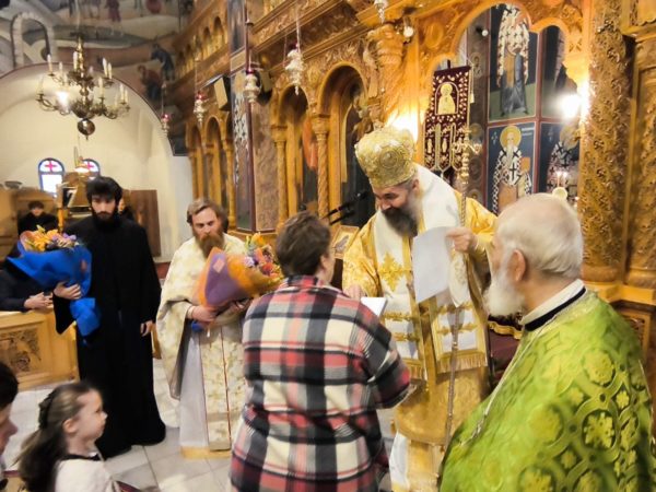 Κατά τη διάρκεια της Θείας Λειτουργίας, ο Σεβασμιώτατος ομίλησε καταλλήλως προς το εκκλησίασμα, αναπτύσσοντας το θεολογικό περιεχόμενο της εορτής της Υπαπαντής. Τόνισε ότι πρόκειται για την κατ’ εξοχήν εορτή της συνάντησης Θεού και ανθρώπου, κατά την οποία ο άναρχος και προαιώνιος Δημιουργός προσέρχεται εν χρόνω στον Ναό, προσφερόμενος για τη σωτηρία του κόσμου.