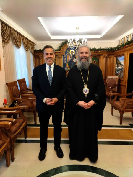 Αμέσως μετά την Αρχιερατική Θεία Λειτουργία, ο Σεβασμιώτατος μετέβη στο γραφείο του Αντιπεριφερειάρχου κ. Αθανασίου Τάσκα, καθώς και στο γραφείο του εορτάζοντος Δημάρχου Φλώρινας κ. Βασιλείου Γιαννάκη, όπου αντάλλαξε εγκάρδιες ευχές για τη νέα χρονιά που ανέτειλε, μεταφέροντας το μήνυμα της Εκκλησίας για συνεργασία και κοινή προσφορά στον τόπο.