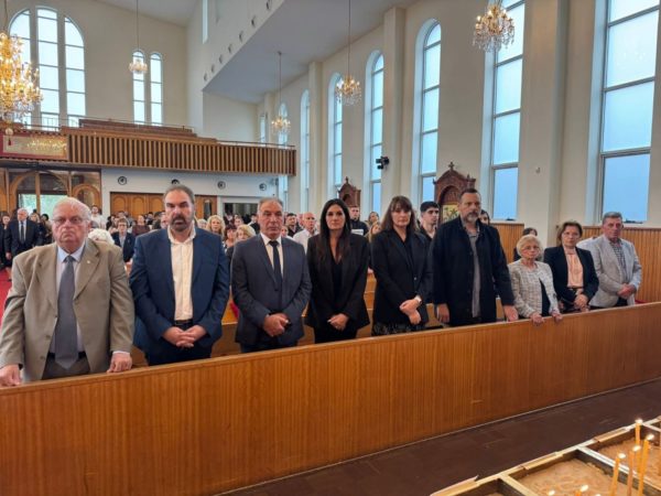 Στη Αρχιερατική Θεία Λειτουργία παρέστησαν ο Δήμαρχος Φλώρινας κ. Βασίλειος Γιαννάκης με τη σύζυγό του, ο Πρόεδρος του Διεθνούς Παμμακεδονικού Συνδέσμου κ. Γεώργιος Κοσμίδης, η Πρόεδρος του Παμμακεδονικού Συνδέσμου Νέας Νοτίου Ουαλίας κα. Αναστασία Θεοδωροπούλου, καθώς και μέλη των Παμμακεδονικών οργανώσεων.