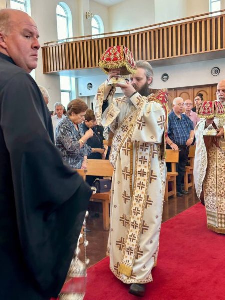 Με την άδεια και την ευλογία του Σεβασμιωτάτου Αρχιεπισκόπου Αυστραλίας κ. Μακαρίου, ο Σεβασμιώτατος Μητροπολίτης Φλωρίνης, Πρεσπών και Εορδαίας κ. Ειρηναίος λειτούργησε χθες στον Ιερό Ναό Αγίου Σπυρίδωνος στο Σίδνεϊ, όπου έγινε δεκτός με αισθήματα χαράς και σεβασμού από τον ιερό κλήρο και τους πιστούς.