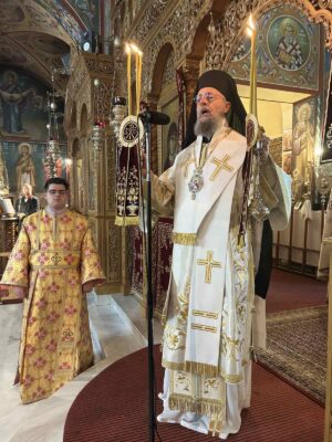 –Χοροστάτησε στον Όρθρο και τέλεσε Αρχιερατική Θεία Λειτουργία συλλειτουργούντος του Θεοφιλεστάτου Επισκόπου Τανάγρας κ. Αποστόλου στον Ιερό Ναό Νεομαρτύρων Πτολεμαϊδας. Μετά το πέρας της Θείας Λειτουργίας τέλεσε Τρισάγιο υπέρ αναπαύσεως του μακαριστού Αρχιεπισκόπου Τιράνων και πάσης Αλβανίας κυρού Αναστασίου.