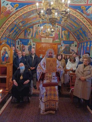 –Τέλεσε τον Όρθρο και την Αρχιερατική Θεία Λειτουργία στον Ιερό Ναό της Ιεραποστολικής Αδελφότητος Αγίας Μακρίνας Φλώρινας για την 25η επέτειο από την χειροτονία σε Αρχιερέα του Γέροντος Μητροπολίτου κ. Θεοκλήτου.
