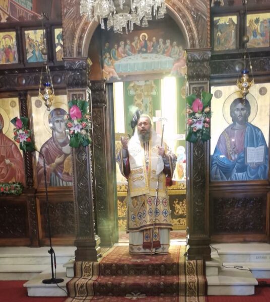 – Τέλεσε αρχιερατική Θεία Λειτουργία στο πανηγυρίζον παρεκκλήσιο της Αγίας Μακρίνης της Ο.Ι.Α «Αγία Μακρίνα».