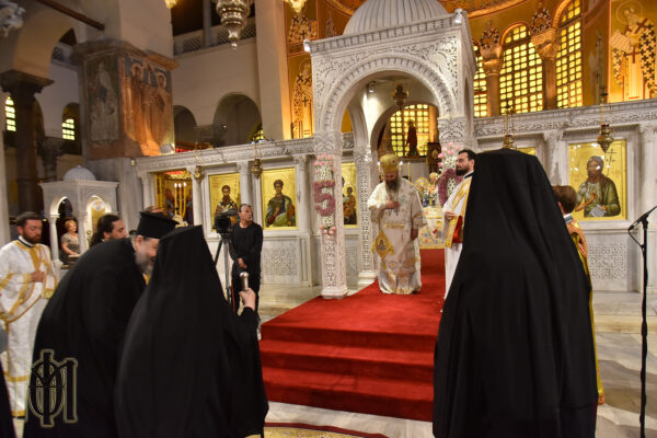 – Χοροστάτησε στον εσπερινό στο πανηγυρίζον παρεκκλήσιο της Αγίας Μακρίνης της Ο.Ι.Α «Αγία Μακρίνα».