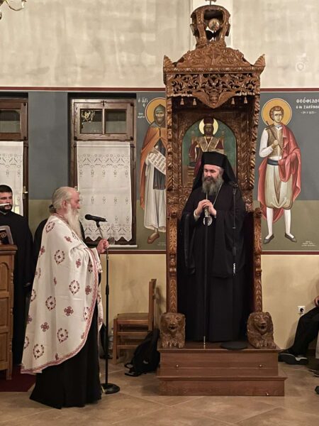 Χοροστάτησε στον εσπερινό στην πανηγυρίζουσα Ιερά Μονή Παναγίας του Έβρου Νέας Μάκρης Αλεξανδρούπολης, κατόπιν προσκλήσεως του Σεβασμιωτάτου Μητροπολίτου Αλεξανδρουπόλεως κ. Ανθίμου, συγχροστατούντων του οικείου Ποιμενάρχου και του Θεοφιλεστάτου Επισκόπου Πατάρων κ. Αθηναγόρου.