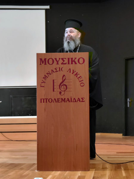 Επισκέφθηκε το Μουσικό Σχολείο Πτολεμαΐδας στο πλαίσιο του εορτασμού των Τριών Ιεραρχών, όπου επικοινώνησε με τους μαθητές και τους εκπαιδευτικούς. Εκ μέρους του Συλλόγου Διδασκόντων του Σχολείου τον Σεβασμιώτατο καλωσόρισε ο Διευθυντής του Σχολείου κ. Παύλος Ταγτεβερενίδης, Δρ Φιλολογίας.