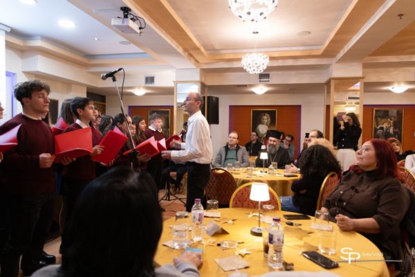 Αμέσως μετά, μετέβη στην Πτολεμαΐδα, όπου στο γραφείο του άκουσε τα κάλαντα από μαθητές του Μουσικού Σχολείου Πτολεμαΐδας. Απευθυνόμενος στα παιδιά και στους εκπαιδευτικούς, τους ευχήθηκε υγεία, δύναμη και ευλογημένο το Άγιο Δωδεκαήμερο.