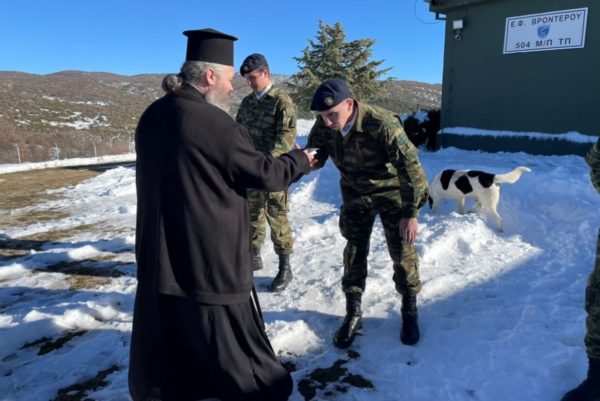 Παράλληλα ο Σεβασμιώτατος κ. Ειρηναίος με τον κ. Δήμτσα, συνοδευόμενοι από τον Διοικητή του 1ου Συντάγματος Πεζικού Φλώρινας Συνταγματάρχη (ΠΖ) κ. Στέφανο Δοξάκη, τον Αντιπεριφερειάρχη Περιφερειακής Ενότητας Φλώρινας κ. Σωτήριο Βόσδου, τον Δήμαρχο Πρεσπών κ. Παναγιώτη Πασχαλίδη και τον νεοεκλεγέντα Δήμαρχο Πρεσπών κ. Γεώργιο Στεργίου, επισκέφθηκαν τα στρατιωτικά φυλάκια της Νίκης, του Λαιμού και του Βροντερού, όπου μετέφεραν τις ευχές του Μακαριωτάτου, προσφέροντας στους ακρίτες αξιωματικούς και στρατιώτες την Καινή Διαθήκη.