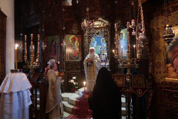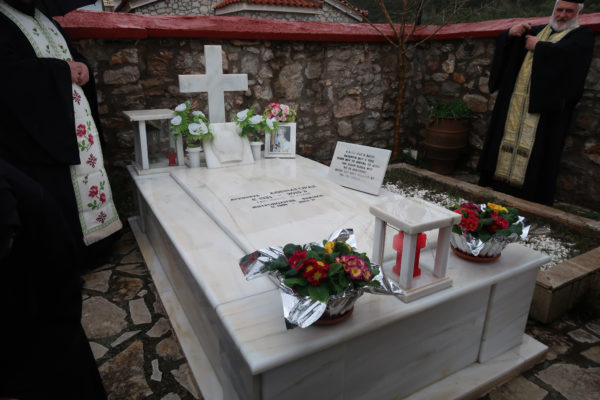 Μετά το πέρας της Θείας Λειτουργίας ακολούθησε τρισάγιο επί του μνήματος του μακαριστού, το οποίο ευρίσκεται έξω από το μοναστήρι του Προφήτου Ηλιού.
