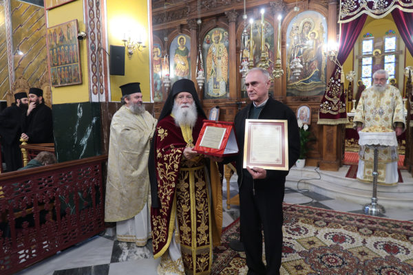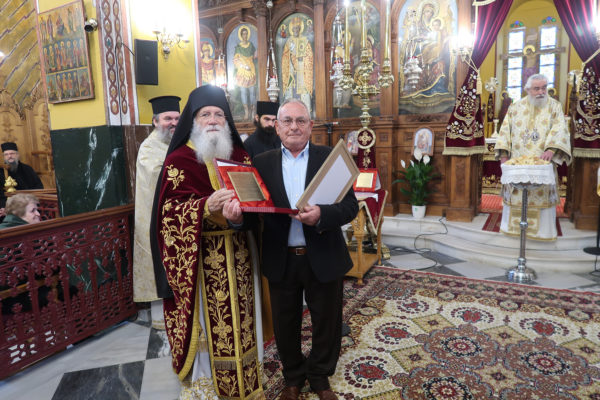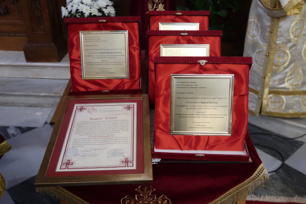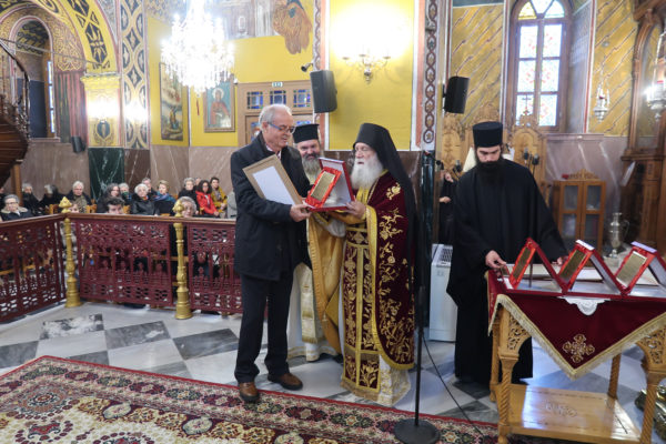 Στο τέλος της Θείας Λειτουργίας, ο προϊστάμενος του Ιερού Ναού μαζί με τους εφημερίους τίμησαν τους απερχόμενους εκκλησιαστικούς επιτρόπους για την όλη προσφορά τους στον Ιερό Ναό και στο λαό του Θεού.
