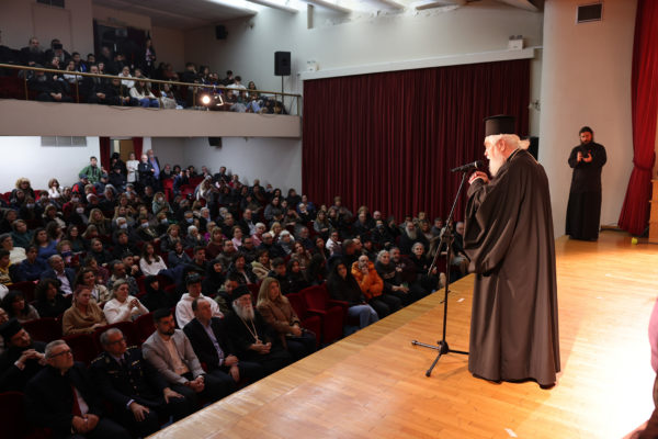 Στο τέλος ομίλησε ο Σεβ. Ποιμενάρχης κ. Θεόκτιστος τονίζοντας τη σημασία του χριστιανικού θεάτρου και των μηνυμάτων του στην καθημερινή ζωή μας.