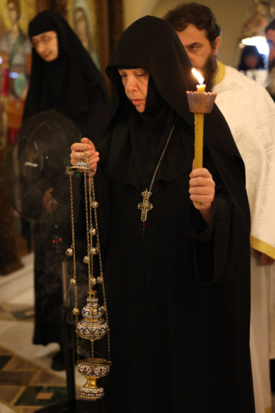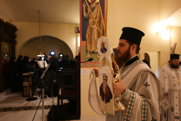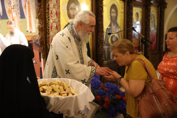 Η Γερόντισσα Μόνικα, Καθηγουμένη της Ιεράς Μονής, μαζί με την γυναικεία αδελφότητα, μετά το πέρας της Θείας Λειτουργίας προσέφεραν κέρασμα προς όλους τους πιστούς.