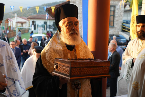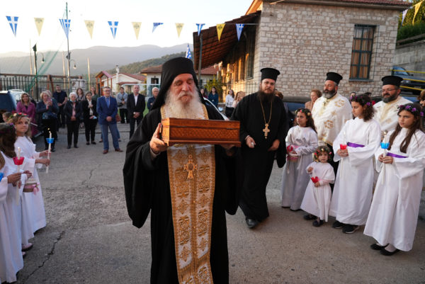Μετά την υποδοχή ακολούθησε η ακολουθία του Εσπερινού, χοροστατούντος του Σεβ. Ποιμενάρχου κ. Θεοκτίστου και έπειτα ακολούθησε κέρασμα για όλους τους πιστούς.