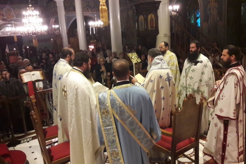 Στην Ιερά Αγρυπνία, η οποία μεταδόθηκε σε απευθείας σύνδεση από τον Ραδιοφωνικό Σταθμό της Ι. Μητροπόλεως Χαλκίδος, προεξήρχε ο Σεβασμιώτατος Μητροπολίτης Χαλκίδος κ. Χρυσόστομος, συλλειτουργούντων και άλλων Κληρικών της Τοπικής μας Εκκλησίας και πολλών ευσεβών χριστιανών, ενώ το ιερό Αναλόγιο διηκόνησε εξαιρετικά Χορός Ιεροψαλτών, υπό την διεύθυνση του εκ Χαλκίδος καταγομένου Πρωτοψάλτου και Καθηγητού της Βυζαντινής Μουσικής κ. Ιωάννου Αθανασίου.
