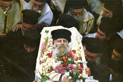 Κατάκοπος, μετὰ τὸ μεσημέρι, ἀποσύρθηκε γιὰ λίγο στὸ κελί του. Ἔφτασε ὅμως ὁ π. Ἀλέξιος, ποὺ ἔπρεπε γιὰ πρώτη φορὰ νὰ κάνει κηδεία. Νέος ἱερέας καὶ δὲν ἤξερε τὸ τυπικὸ καὶ πὼς ψάλλεται. Μὲ ὑπομονὴ ὁ μακαριστὸς γέροντας τοῦ εἶπε πὼς θὰ κάνει τοῦτο, πὼς ἐκεῖνο. Κι ἒπιασε νὰ τοῦ ψέλνει τροπάρια τῆς νεκρώσιμης Ἀκολουθίας. Ἔψελνε καὶ ὁ Ἀλέξιος, μὰ ὁ Γέροντας ἔψελνε πολὺ ὡραία. Ἔκπαγλα καὶ χαιρότανε ὅλο καὶ περισσότερο. Σὲ κάποια στιγμὴ ὁ Ἀλέξιος νόμισε ὅτι ἔμαθε νὰ ψέλνει τὴν νεκρώσιμη Ἀκολουθία καὶ ἤθελε νὰ φύγει, εὐχαριστώντας καὶ παίρνοντας τὴν εὐχὴ τοῦ Γέροντα. Ἐκεῖνος ὅμως ἐπέμενε νὰ τὴν ψάλουνε ὅλη ἀπὸ τὴν ἀρχή. Ἔτσι κι ἔγινε. Τὴν ψάλανε ὁλόκληρη, καὶ ὁ γέροντας ἤτανε ὅλο χαρὰ κι εὐφροσύνη.
