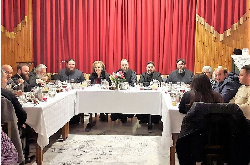 Μετά το πέρας της Αγρυπνίας ακολούθησε στο Πνευματικό Κέντρο του Ιερού Ναού η εόρτιος τράπεζα, η οποία προσεφέρθη σε όλους τους πιστούς, με την παραδοσιακή ψαρόσουπα και διάφορα νηστίσιμα εδέσματα και γλυκά, ευγενικές προσφορές και χορηγίες του Αντιδημάρχου κ. Δημητριου Μίγγου, των Αλιέων της Ερέτριας και των κυριών της Ενορίας.