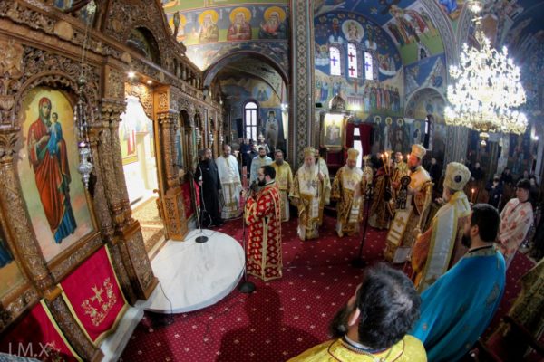 Την επομένη ημέρα στον προαναφερθέντα Ιερό Ναό, τελέσθηκε ο Όρθρος, η αρχιερατική χοροστασία και το αρχιερατικό συλλείτουργο, με προεξάρχοντα τον Σεβασμιώτατο Μητροπολίτη Θεσσαλονίκης κ. Φιλόθεο και συλλειτουργούς τον Πανιερώτατο Μητροπολίτη Φαναρίου κ. Αγαθάγγελο, τον Θεοφιλέστατο Επίσκοπο Σκοπέλου κ. Νικόδημο και τον Σεβασμιώτατο Μητροπολίτη Χαλκίδος κ. Χρυσόστομου και πολλούς παρεπίδημους ή γηγενείς Πρεσβυτέρους και Διακόνους.